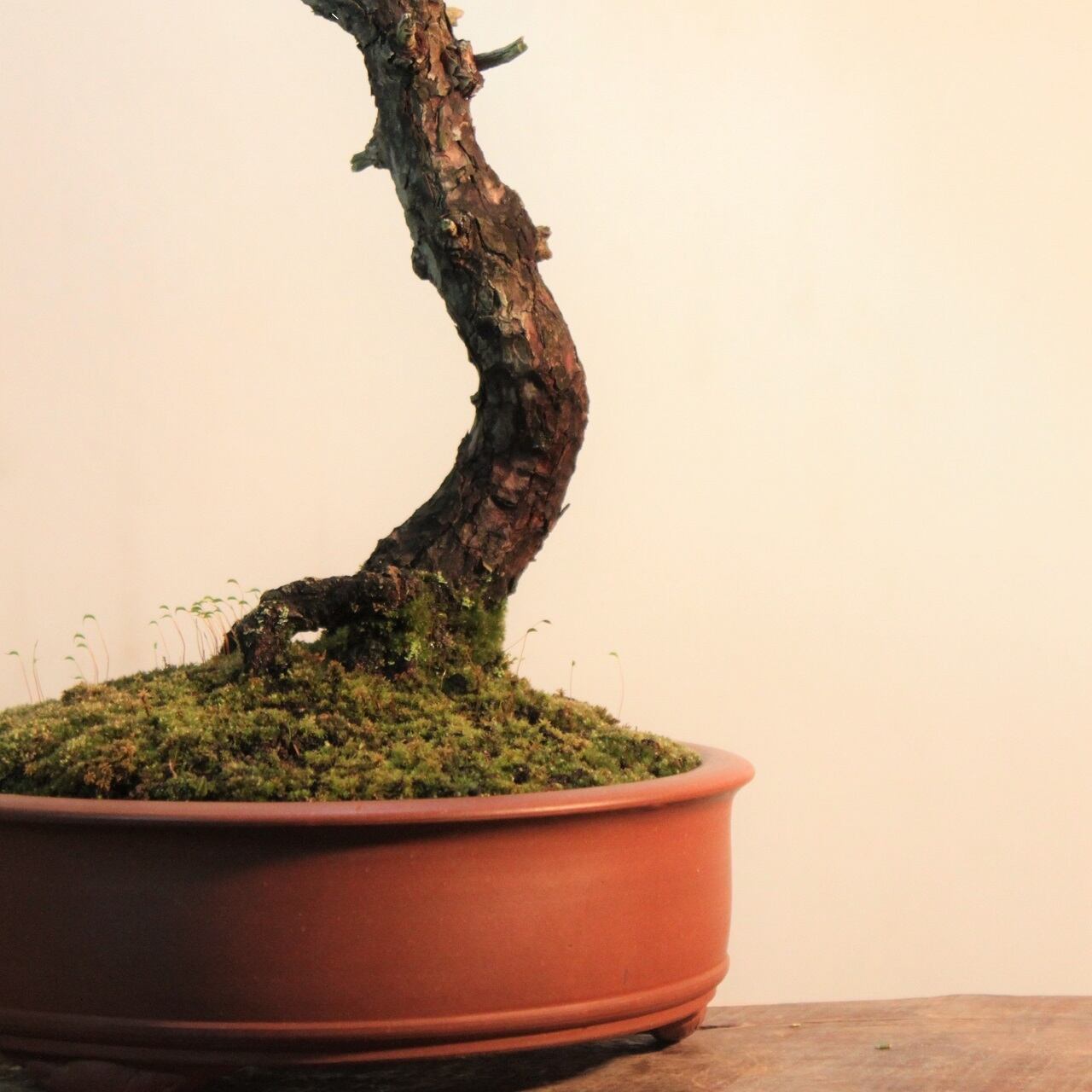 細かな盆栽の針金掛けを行えば、さらに樹格が上がっていく楽しみもあります。各枝が素直に太るように剪定しているのでスムーズに整姿できると思います。
